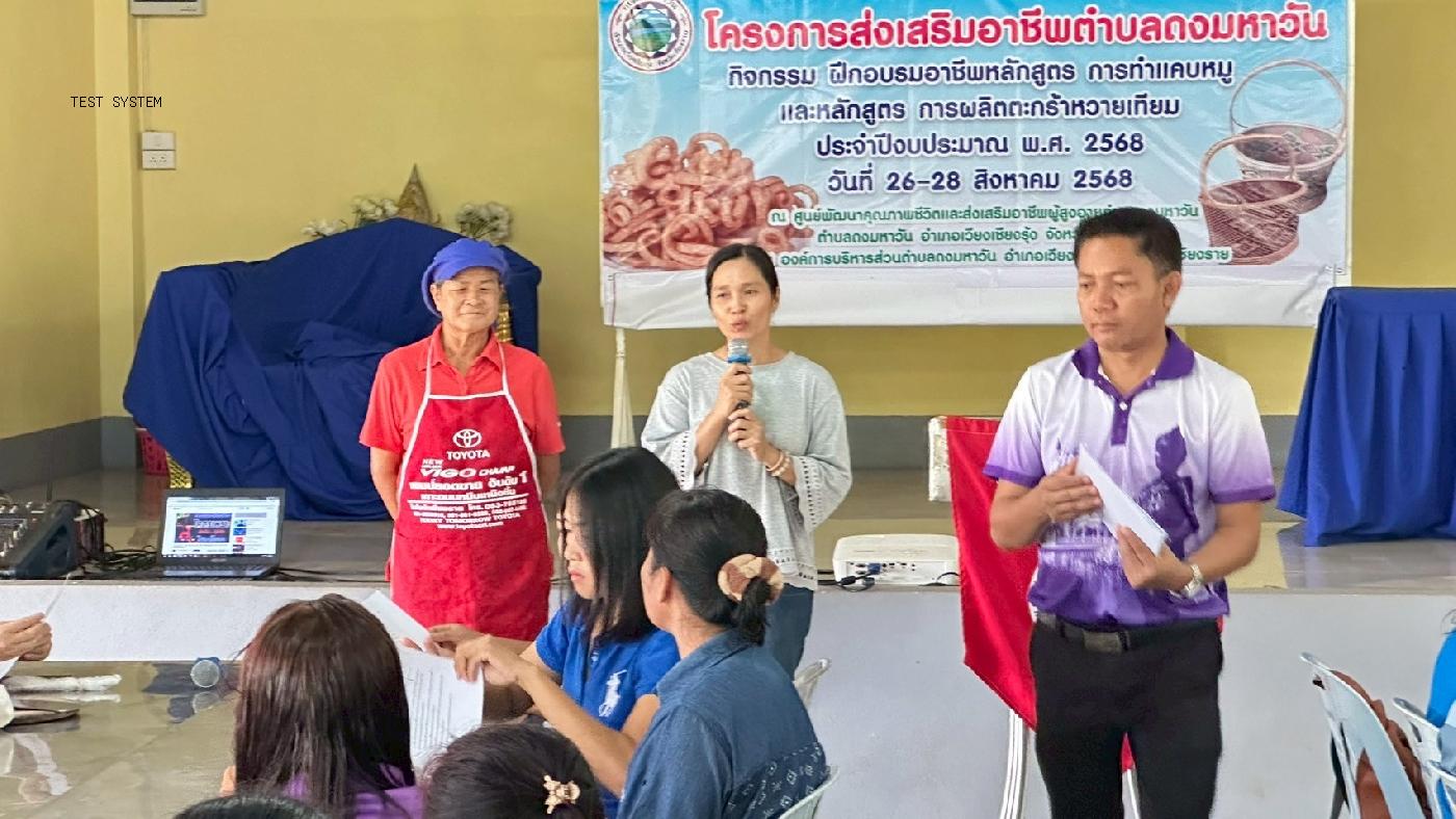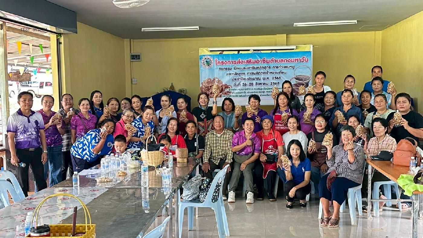 ส่งเสริมอาชีพการทำแคบหมู วันที่ 26 สิงหาคม 2568 ส่งเสริมการผลิตตะกร้าหวายเทียม วันที่ 27-28 สิงหาคม 2568