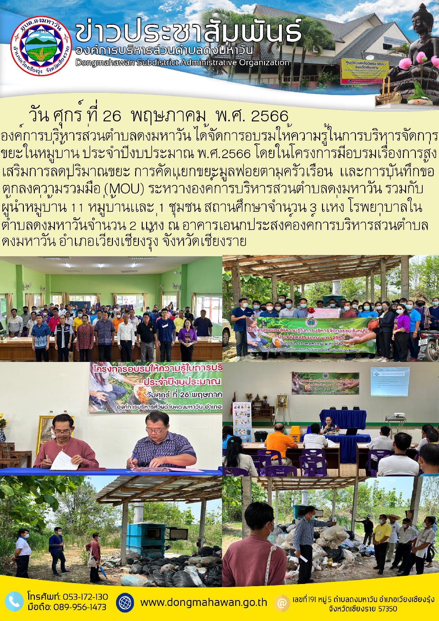โครงการส่งเสริมการบริหารจัดการขยะในพื้นที่ตำบลดงมหาวัน
