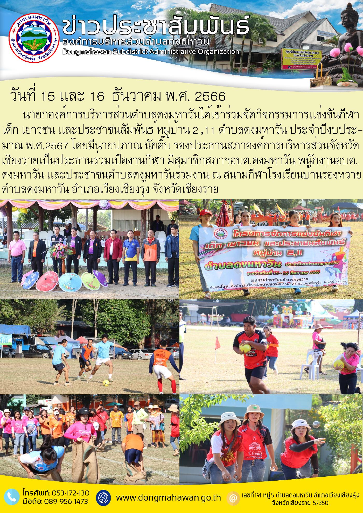 กิจกรรมกีฬาสีสัมพันธ์องค์การบริหารส่วนตำบลดงมหาวัน ประจำปี พ.ศ.2567