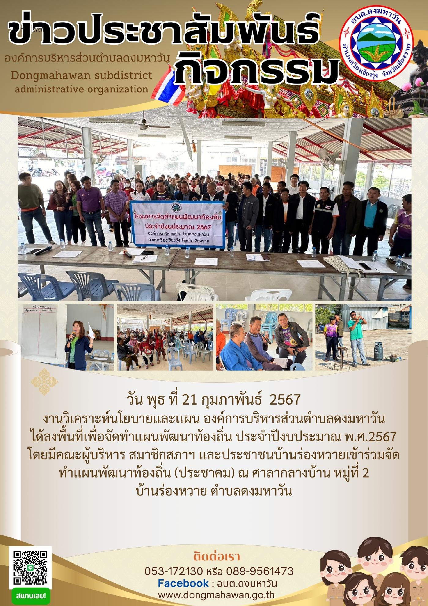กิจกรรม อบต.ดงมหาวัน สัญจรพบประชาชน ประจำปีงบประมาณ พ.ศ.2568 บ้านร่องหวาย หมู่ที่ 2