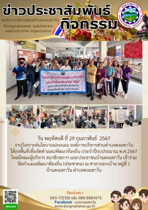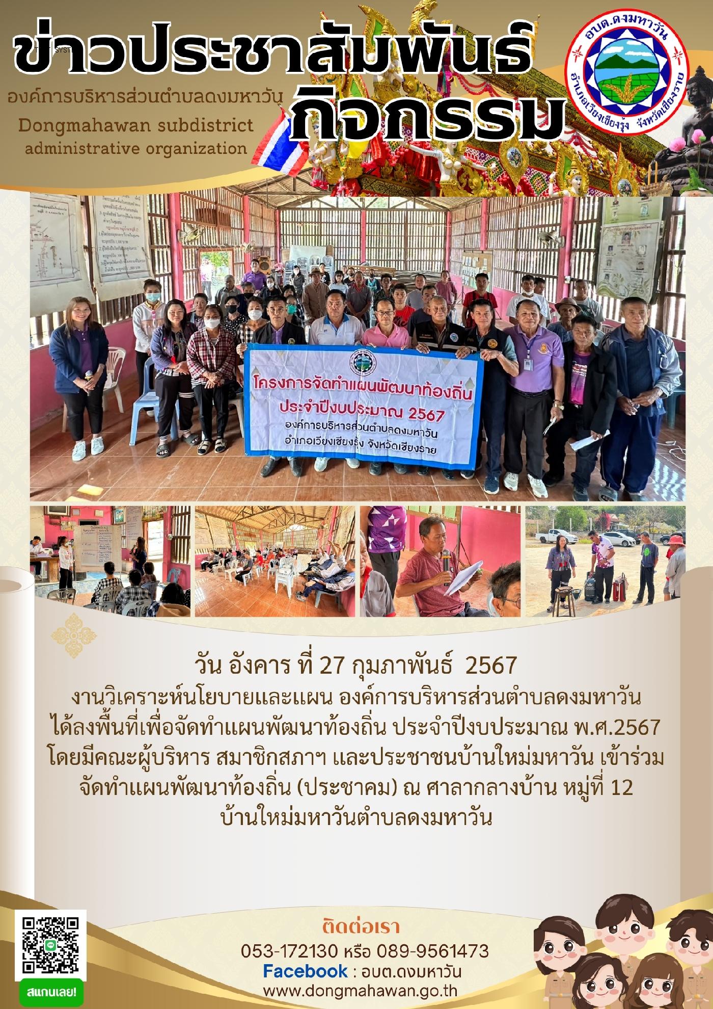 ประชาคมเพื่อจัดทำแผนพัฒนาตำบลดงมหาวัน ประจำปี2560
