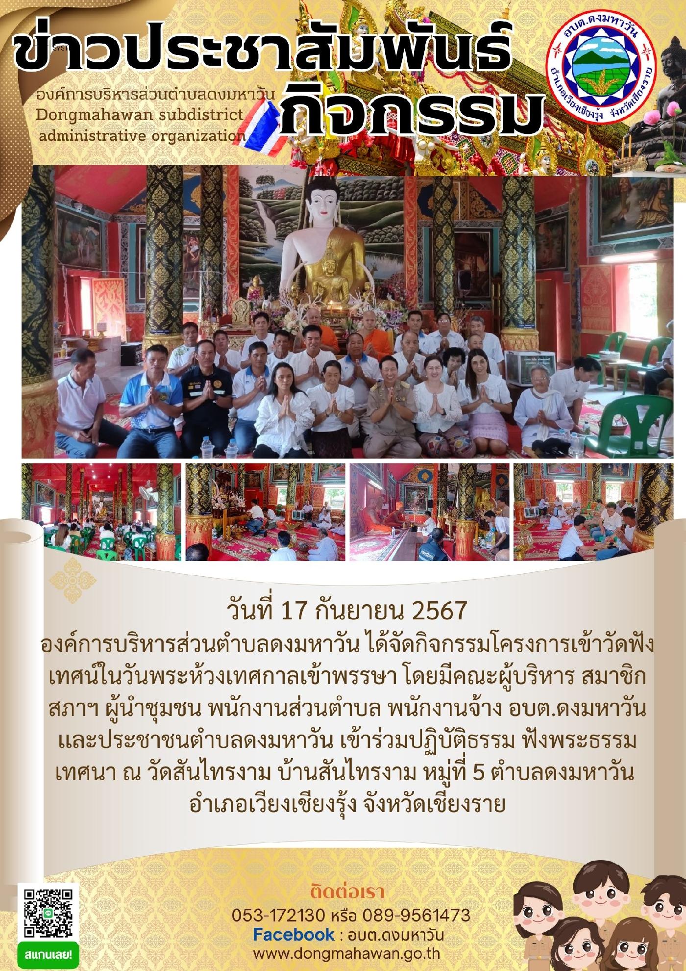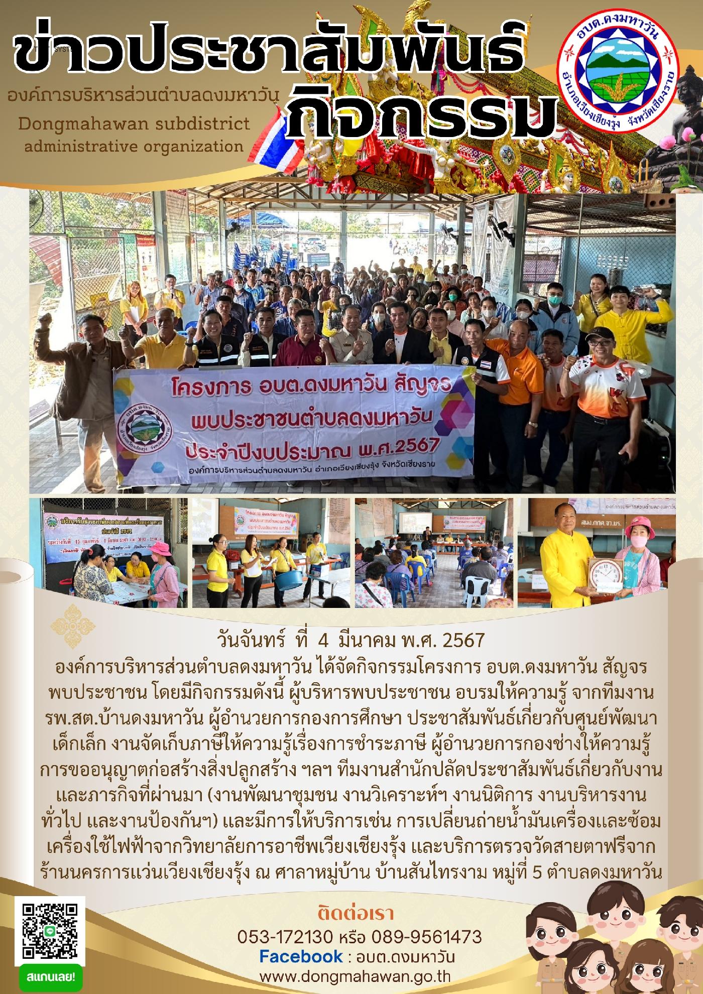 กิจกรรม อบต.ดงมหาวัน สัญจรพบประชาชน ประจำปีงบประมาณ พ.ศ.2568 บ้านสันไทรงาม หมู่ที่ 5