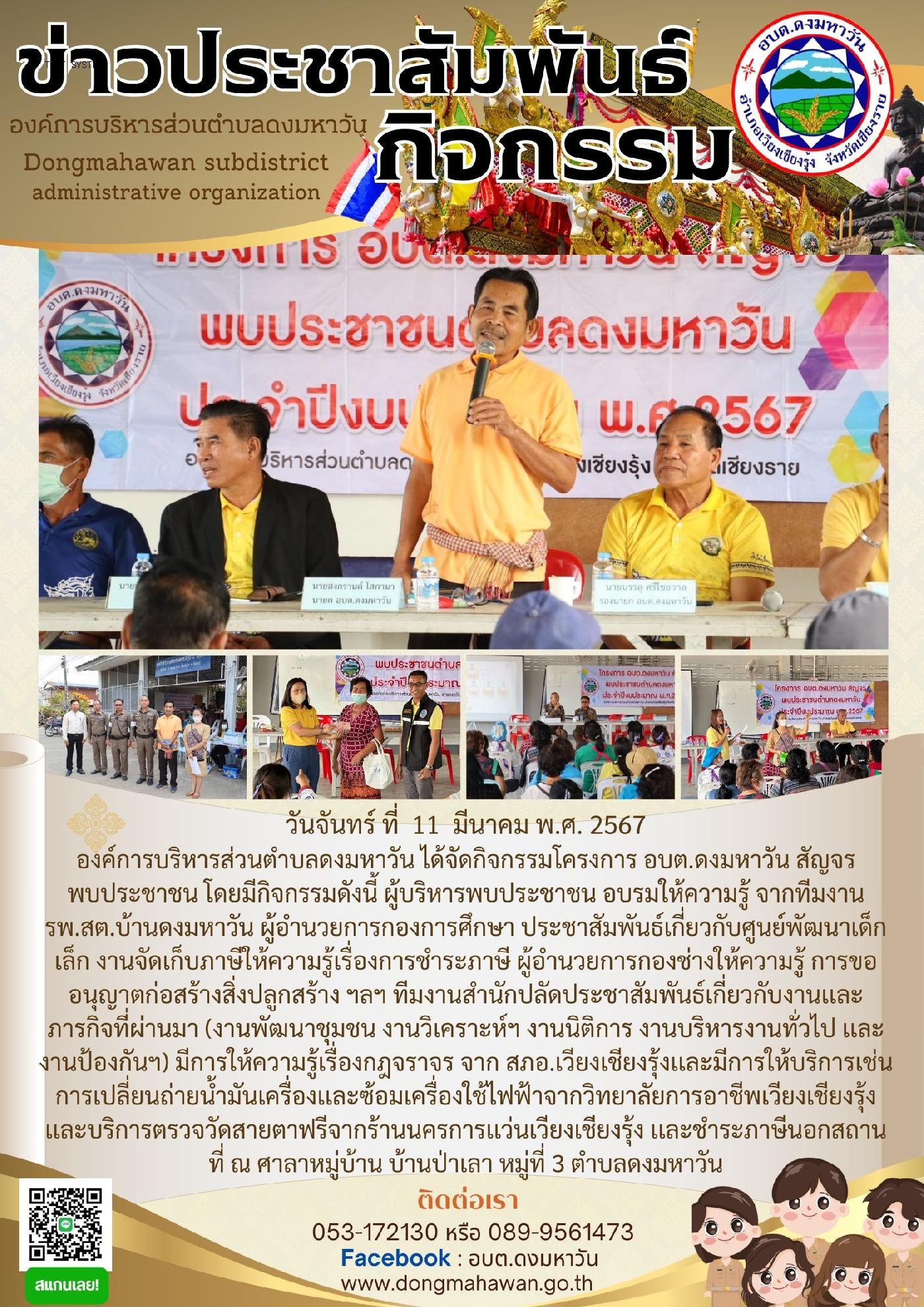 กิจกรรม อบต.ดงมหาวัน สัญจรพบประชาชน ประจำปีงบประมาณ พ.ศ.2568 บ้านดอยศิริมงคล หมู่ที่ 7