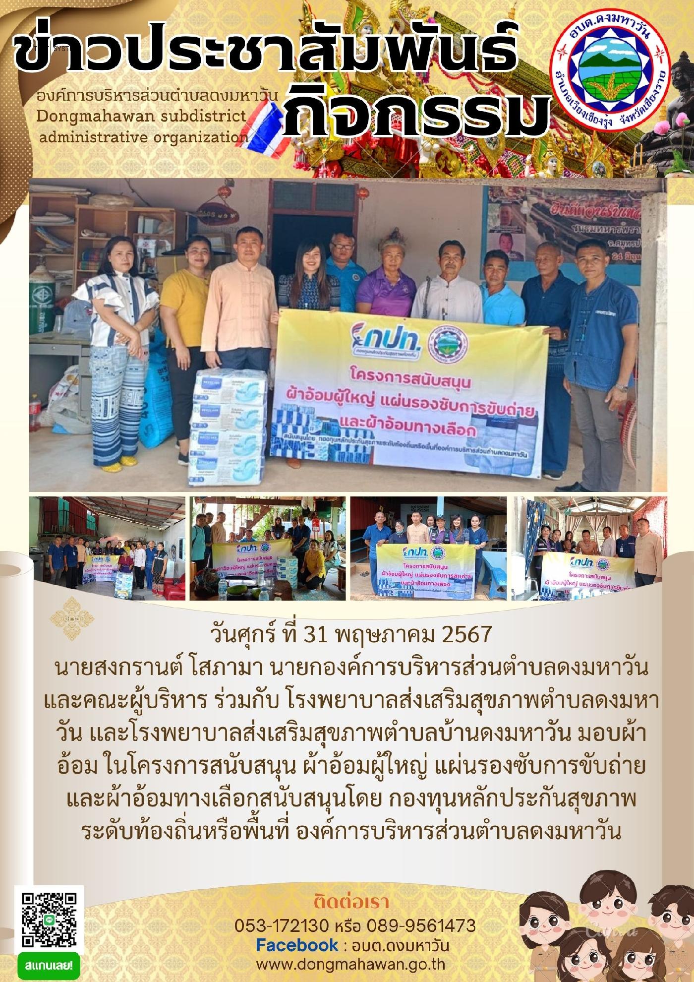 โครงการมอบผ้าอ้อมตามโครงการการจัดบริการดูเเลระยะยาวสำหรับ ผู้สูงอายุที่มีภาวะพึ่งพิงเเละบุคคลอื่นที่มีภาวะพึ่งพิง (LTC) เเละโครงการสนับสนุนผ้าอ้อมผู้ใหญ่ เเผ่นรองซับการขับถ่าย เเละผ้าอ้อมทางเลือก