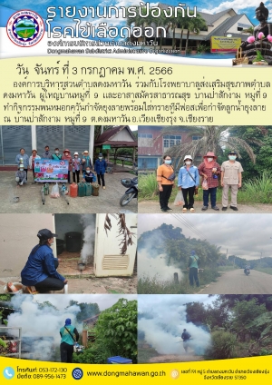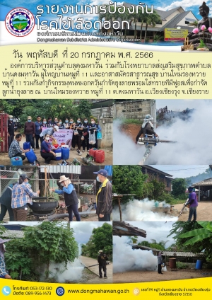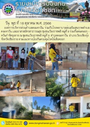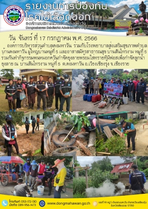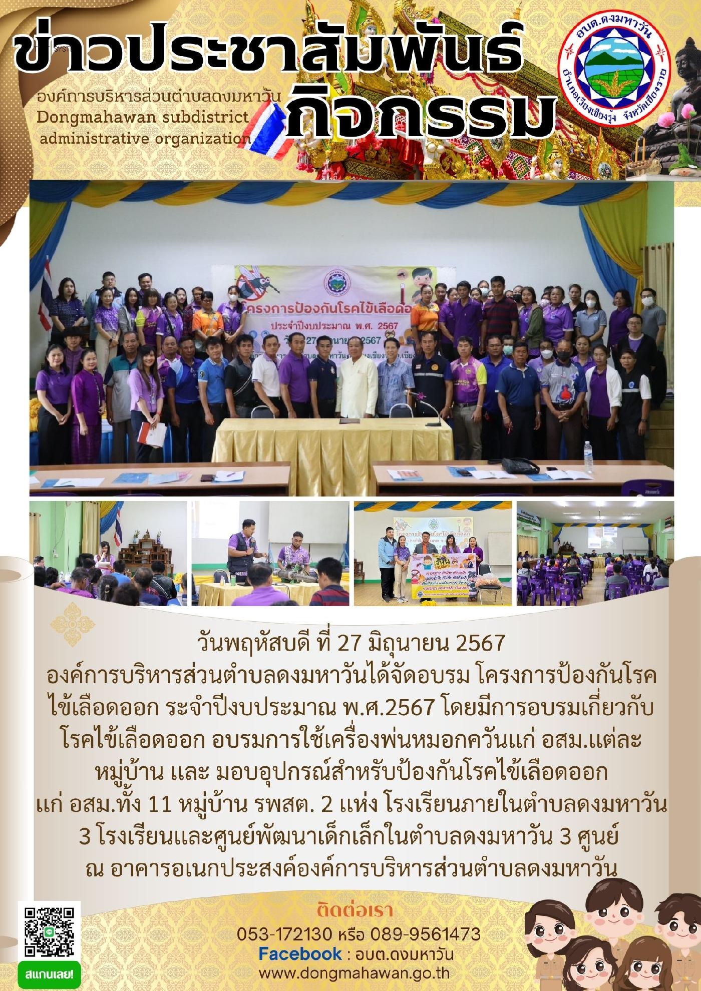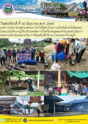 โครงการป้องกันโรคไข้เลือดออก ปีงบประมาณ 2561 วันที่ 1 มิถุนายน 2561 ณ องค์การบริหารส่วนตำบลดงมหาวัน