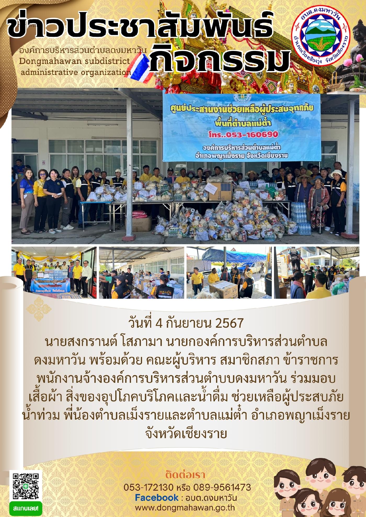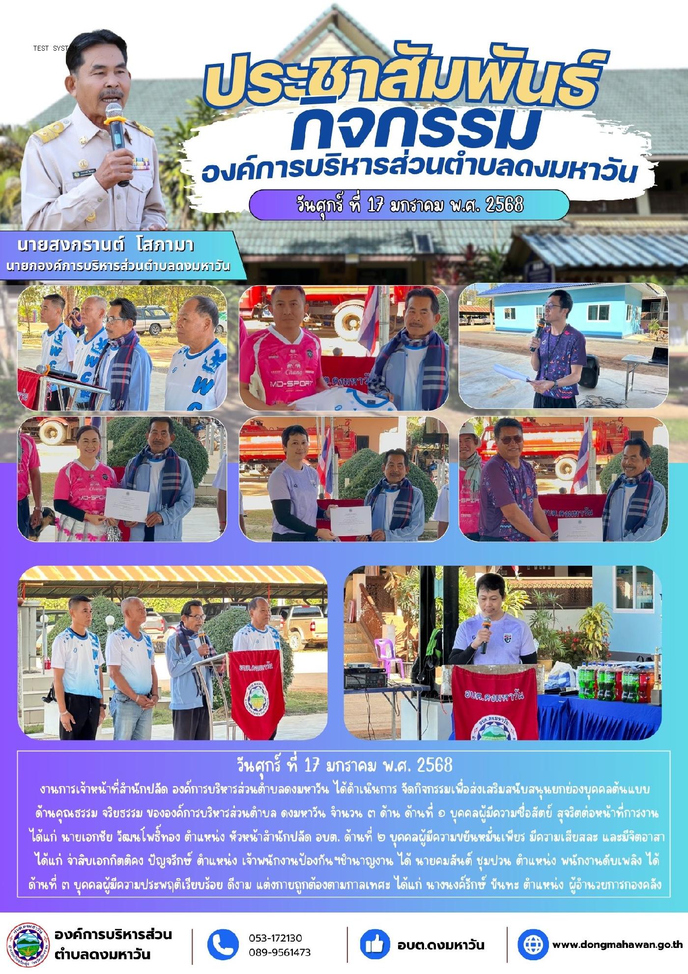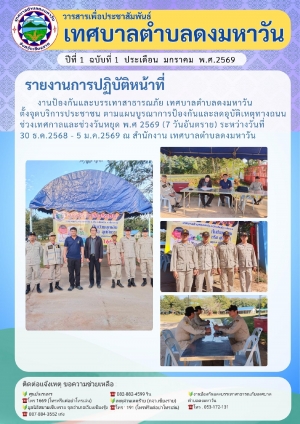 เทศบาลตำบลดงมหาวันตั้งจุดบริการประชาชนตามแผนบูรณาการป้องกันและลดอุบัติเหตุทางถนนช่วงเทศกาลและช่วงวันหยุด พ.ศ 2569 (7 วันอันตราย) ระหว่างวันที่ 30 ธ.ค.2568 - 5 ม.ค.2569