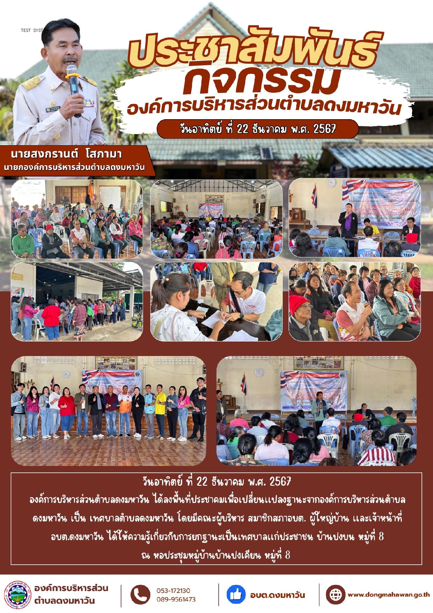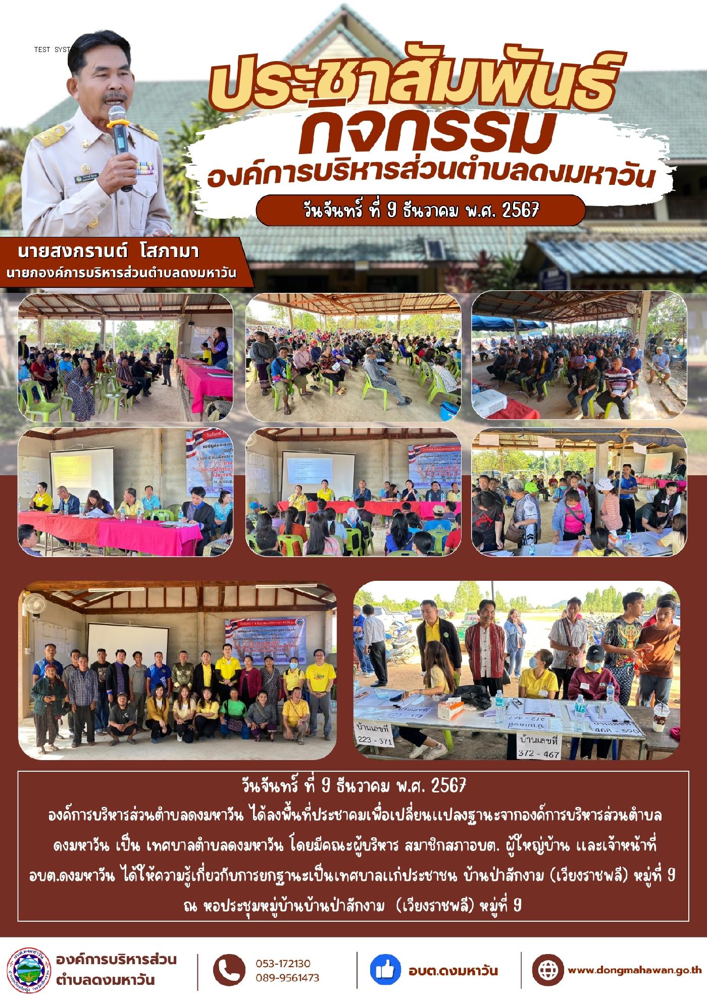 ประชาคมยกฐานะ องค์การบริหารส่วนตำบลดงมหาวัน เป็น เทศบาลตำบลดงมหาวัน หมู่ที่ 9 ป่าสักงาม