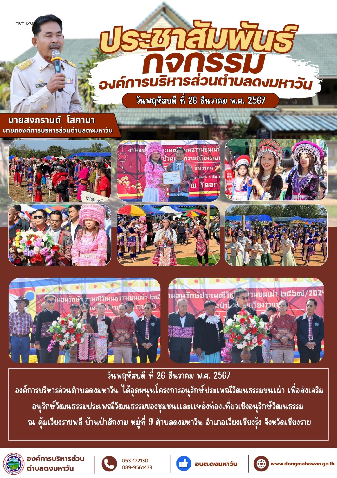 อุดหนุนโครงการอนุรักษ์ประเพณีวัฒนธรรมชนเผ่า เพื่อส่งเสริมอนุรักษ์วัฒนธรรมประเพณีวัฒนธรรมของชุมชนเเละเเหล่งท่องเที่ยวเชิงอนุรักษ์วัฒนธรรม ประจำปี พ.ศ.2567