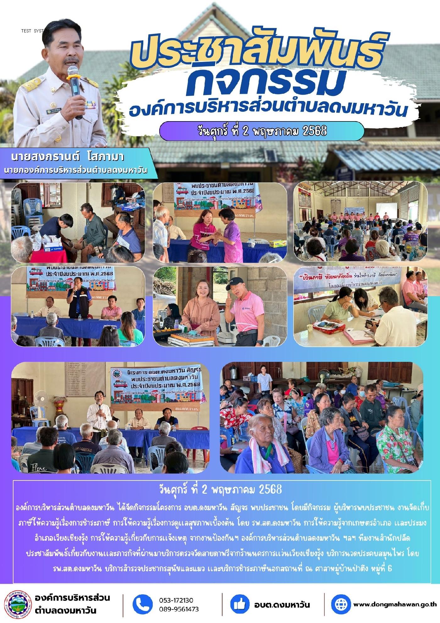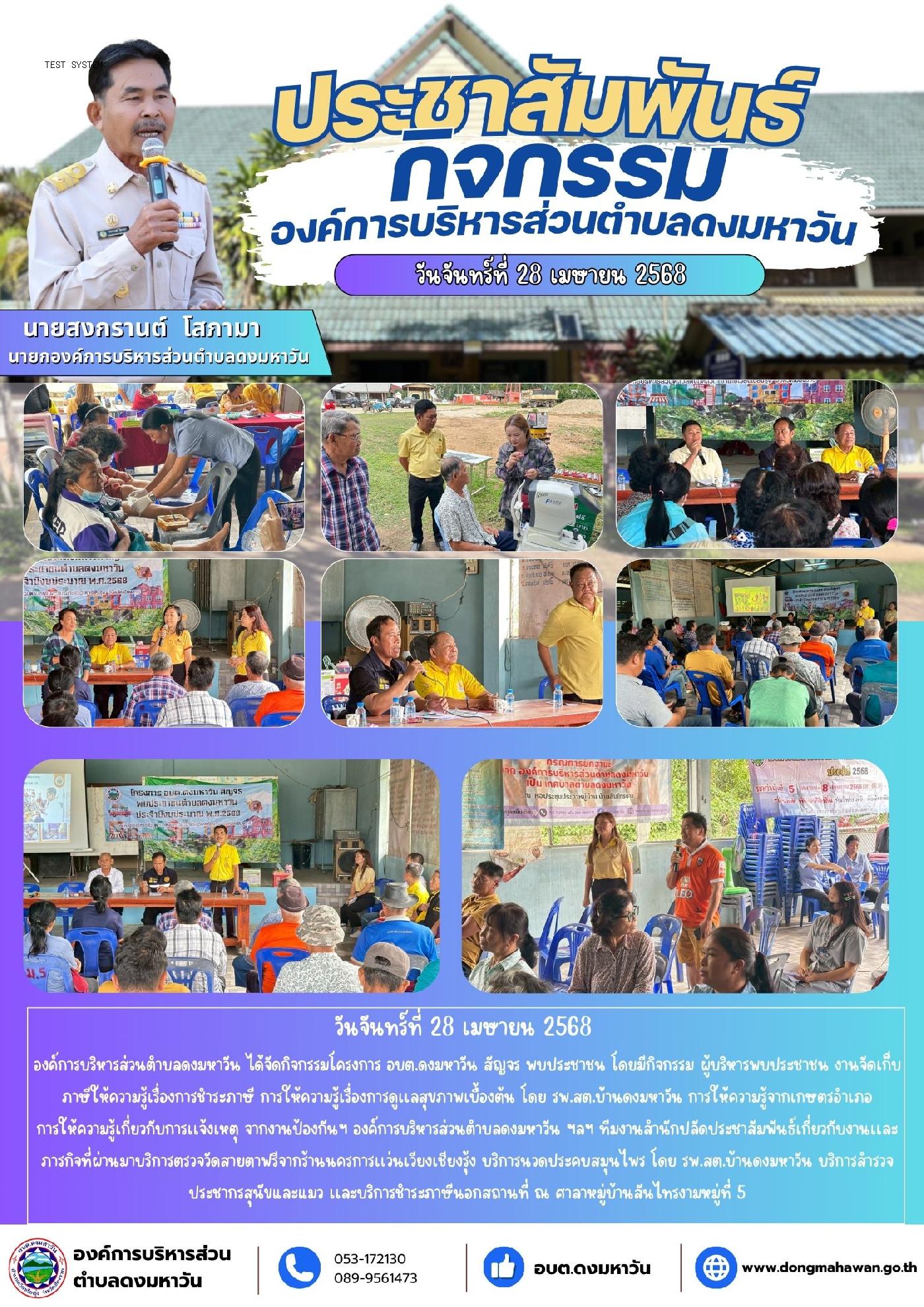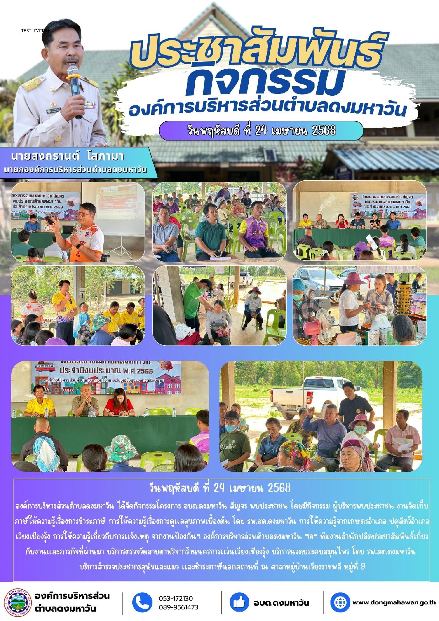 กิจกรรม อบต.ดงมหาวัน สัญจรพบประชาชน ประจำปีงบประมาณ พ.ศ.2568 บ้านดงมหาวัน หมู่ที่ 1