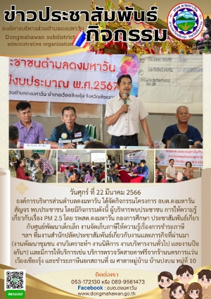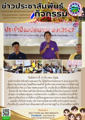 กิจกรรมออกหน่วยเผ้าระวังคุณภาพสิ่งเเวดล้อมในชุมชนเพื่อสื่อสารสร้างความเข้าใจเเละให้บริการประชาชนเชิงรุกร่วมกับจังหวัดเชียงราย