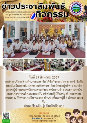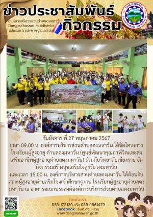 โครงการพัฒนาศักยภาพผู้สูงอายุตำบลดงมหาวัน กิจกรรมโรงเรียนผู้สูงอายุ ปีงบประมาณ พ.ศ. 2567