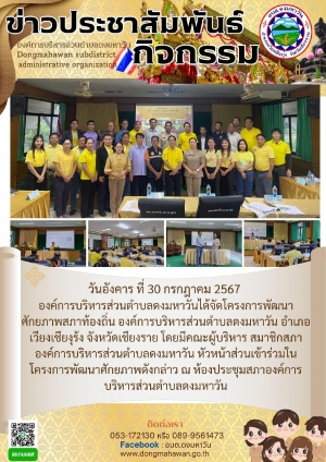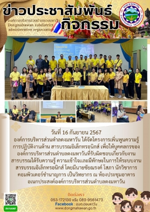 โครงการอบรมเพิ่มพูนประสิทธิภาพสมาชิกสภา อบต. คณะผู้บริหาร พนักงานจ้าง ผู้มีส่วนเกี่ยวข้องกับการพัฒนาท้องถิ่น