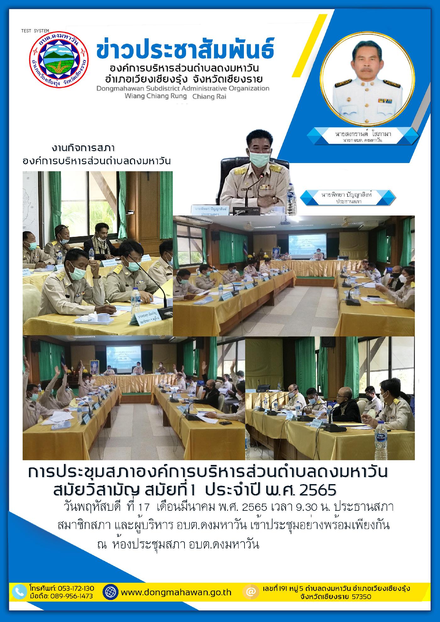 การประชุมสภาองค์การบริหารส่วนตำบลดงมหาวันสมัยวิสามัญ สมัยที่1 ประจำปี พ.ศ. 2565