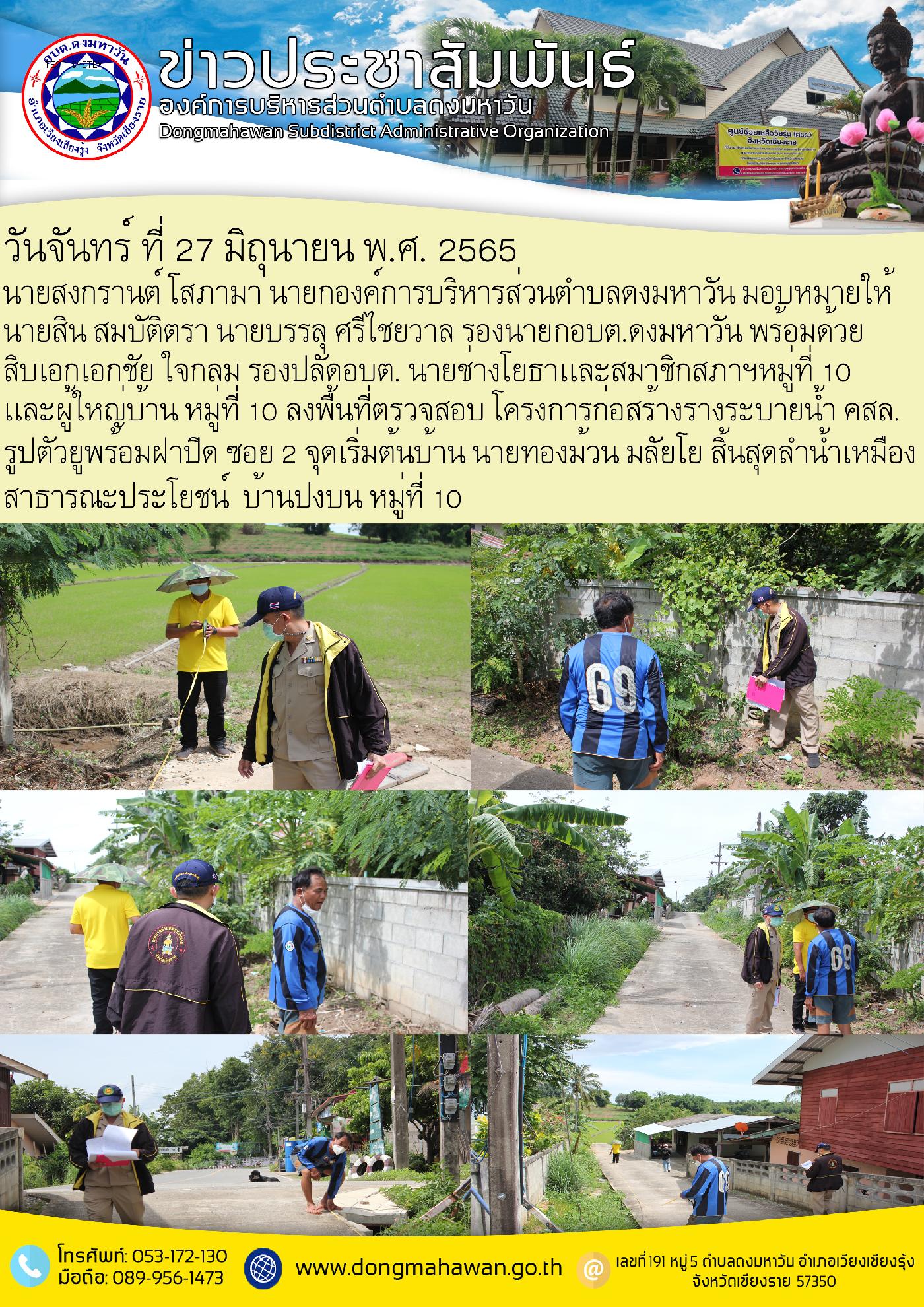 โครงการก่อสร้างรางระบายน้ำ คสล. รูปตัวยูพร้อมฝาปิด ซอย 2 จุดเริ่มต้นบ้าน นายทองม้วน มลัยโย สิ้นสุดลำน้ำเหมืองสาธารณะประโยชน์ บ้านปงบน หมู่ที่ 10
