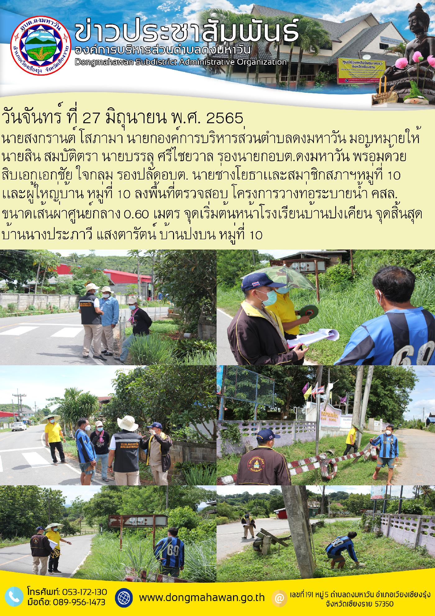 โครงการวางท่อระบายน้ำ คสล. ขนาดเส้นผ่าศูนย์กลาง 0.60 เมตร จุดเริ่มต้นหน้าโรงเรียนบ้านปงเคียน จุดสิ้นสุดบ้านนางประภาวี แสงตารัตน์ บ้านปงบน หมู่ที่ 10