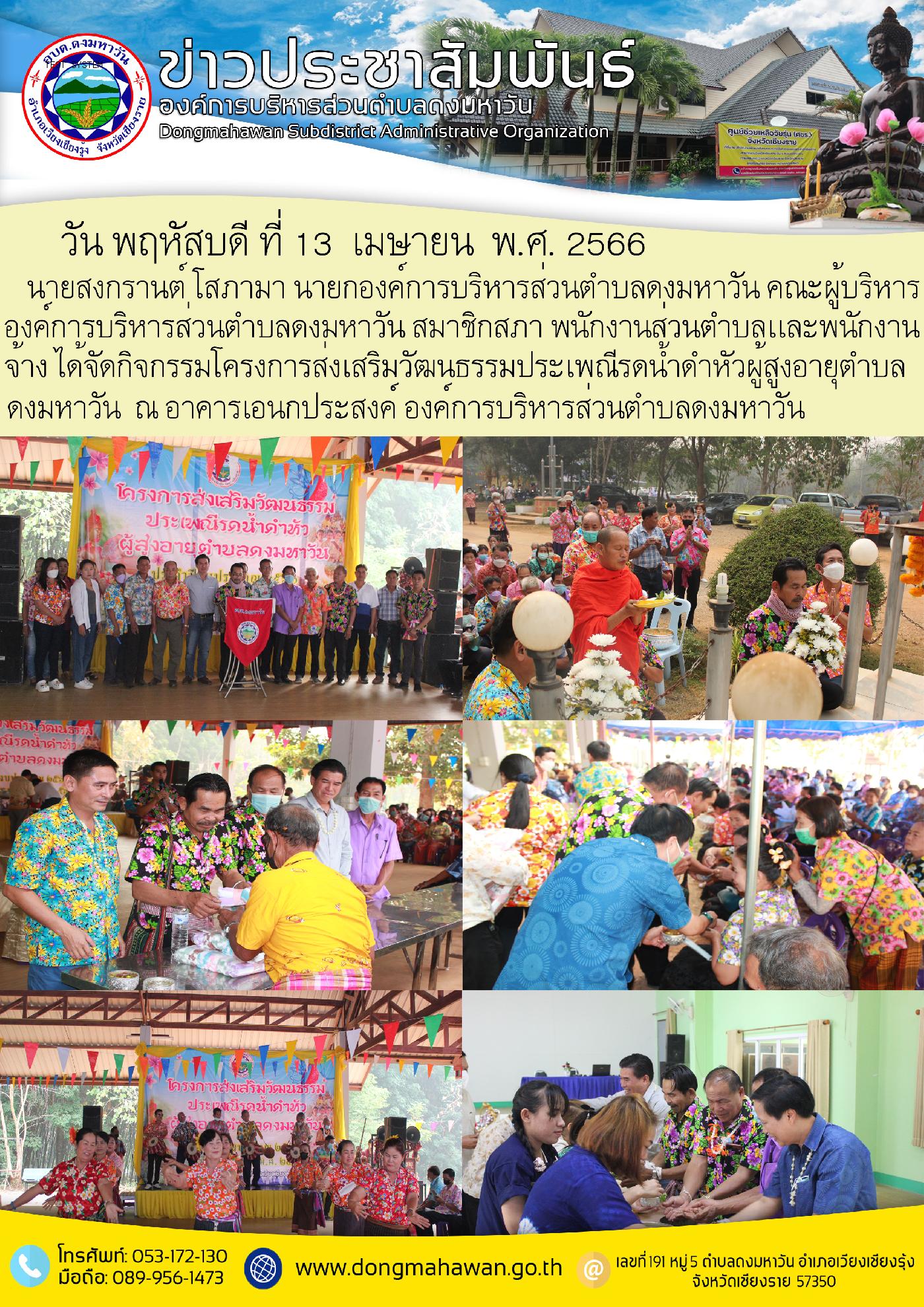 กิจกรรมโครงการส่งเสริมวัฒนนธรรมประเพณีรดน้ำดำหัวผู้สูงอายุ ประจำปี พ.ศ.2566