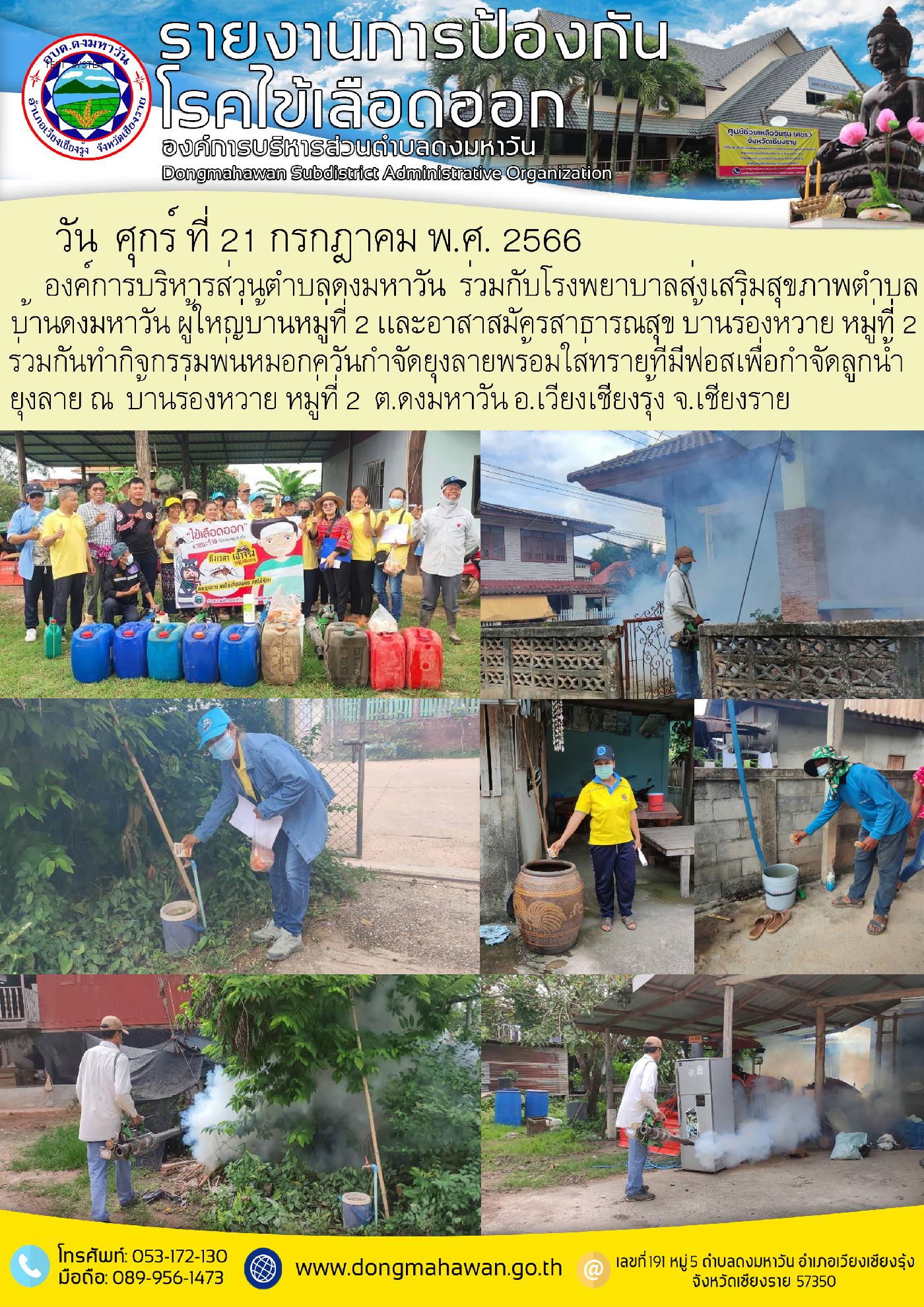 รายงานผลการดำเนินพ่นหมอกควันป้องกันโรคไข้เลือดออก บ้านร่องหวาย หมู่ที่ 2
