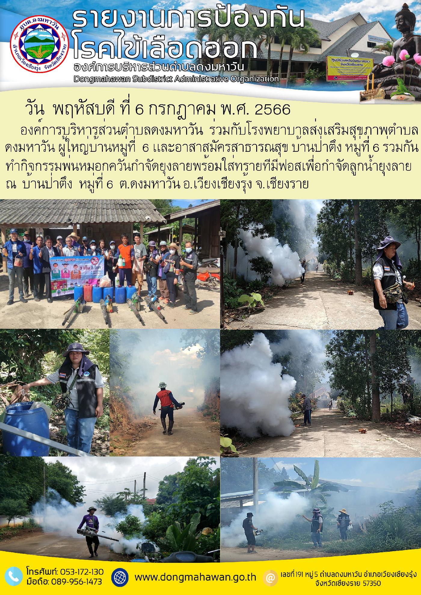 รายงานผลการดำเนินพ่นหมอกควันป้องกันโรคไข้เลือดออก บ้านป่าตึง หมู่ที่ 6