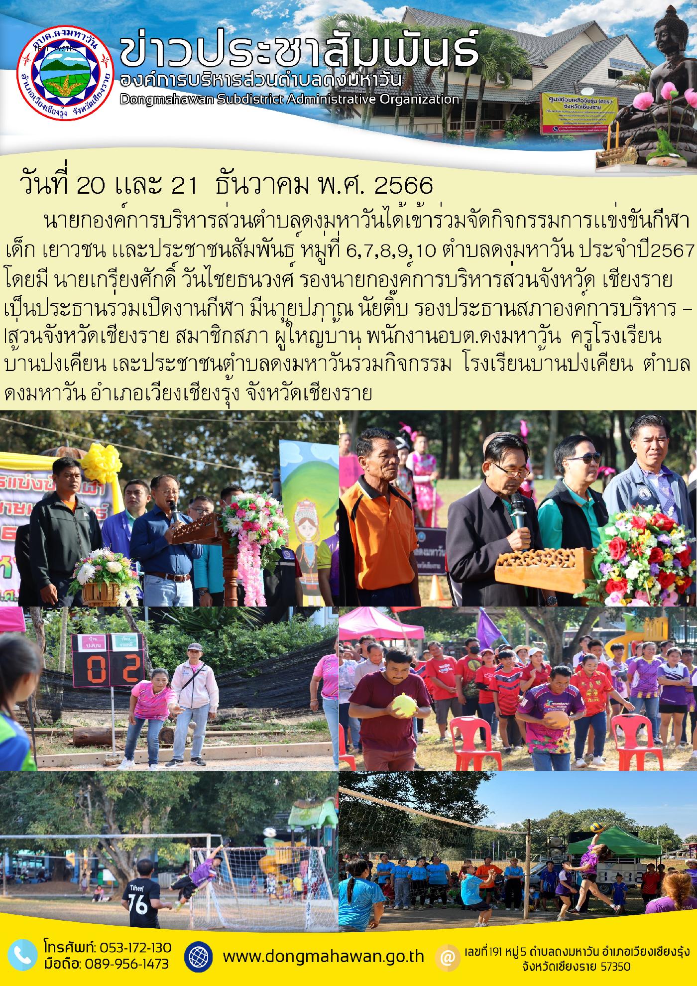 กิจกรรมกีฬา เด็ก เยาวชน เเละประชาชนสัมพันธ์หมู่บ้าน 6,7,8,9,10 ตำบลดงมหาวัน ประจำปีงบประมาณ พ.ศ.2566