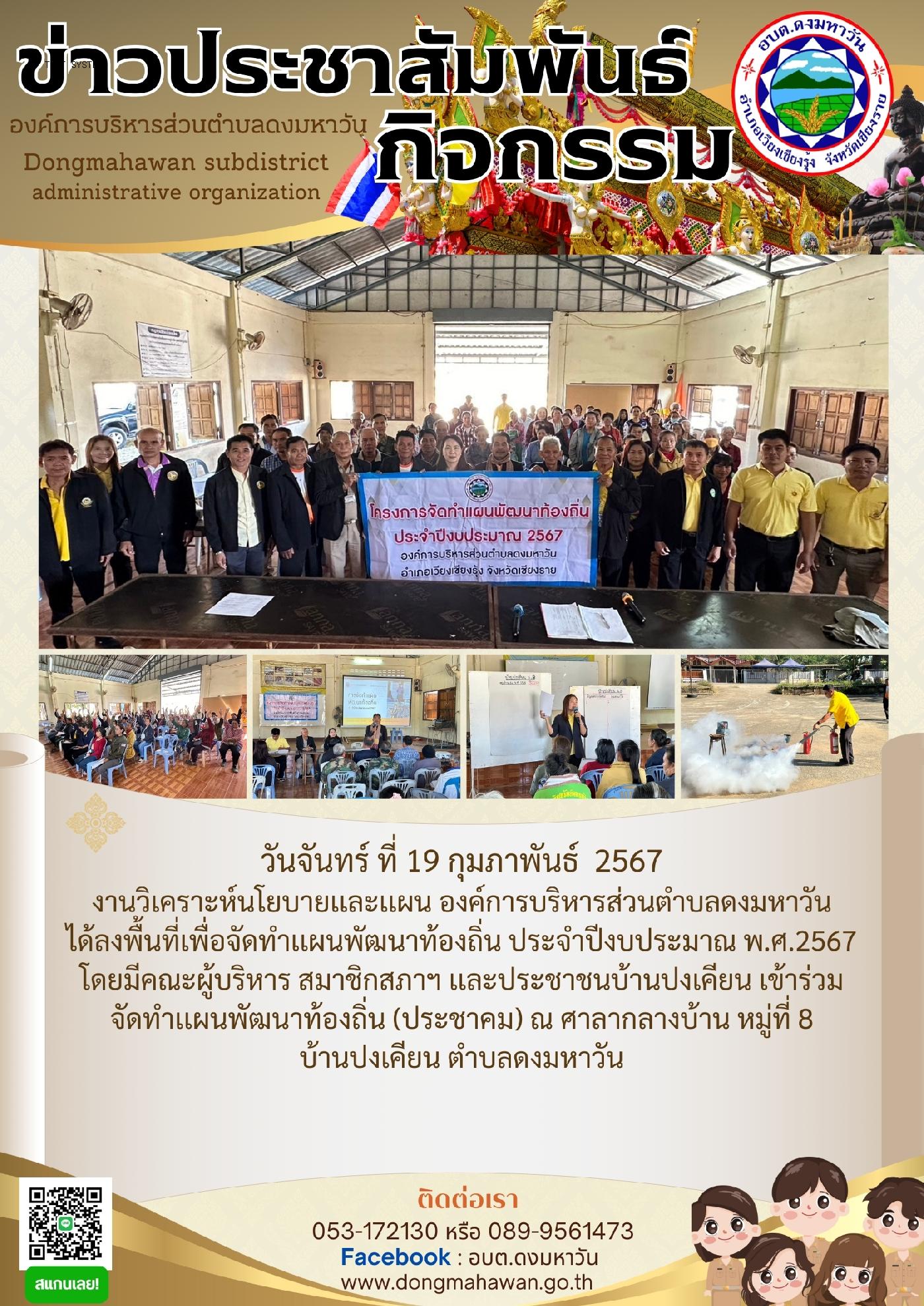 โครงการจัดทำเเผนพัฒนาท้องถิ่นขององค์การบริหารส่วนตำบลดงมหาวัน ประจำปีงบประมาณ พ.ศ.2567 หมู่ที่ 8