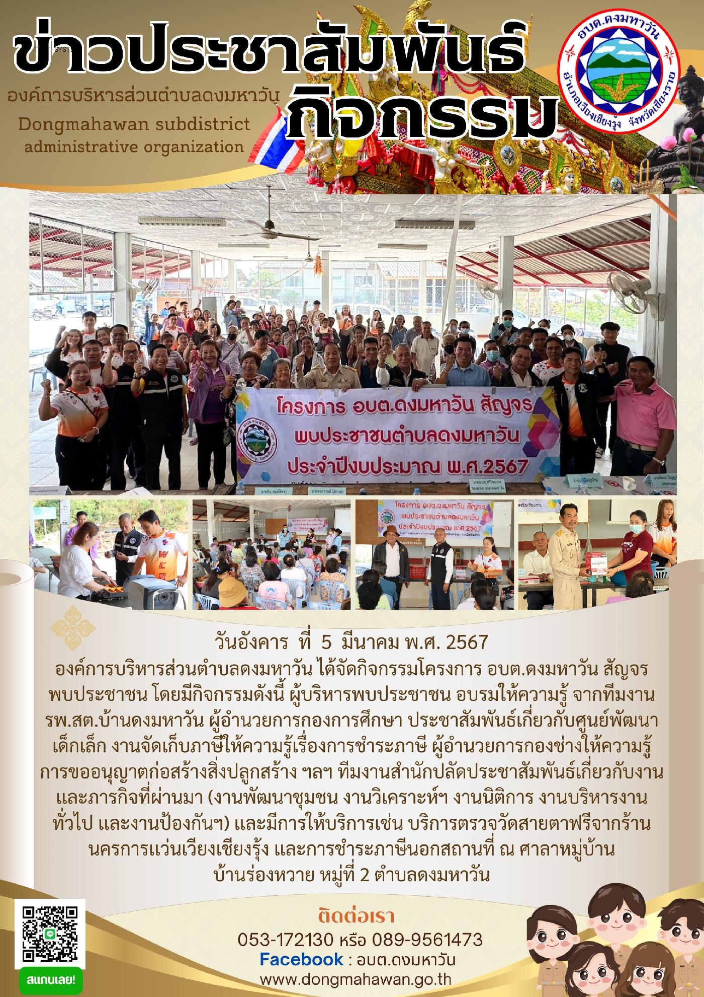 โครงการ อบต.ดงมหาวัน สัญจร พบประชาชน ประจำปีงบประมาณ พ.ศ.2567 หมู่ที่ 2
