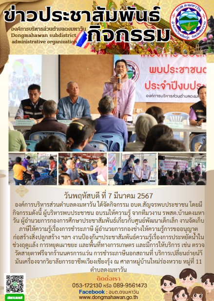 โครงการ อบต.ดงมหาวัน สัญจร พบประชาชน ประจำปีงบประมาณ พ.ศ.2567 หมู่ที่ 11