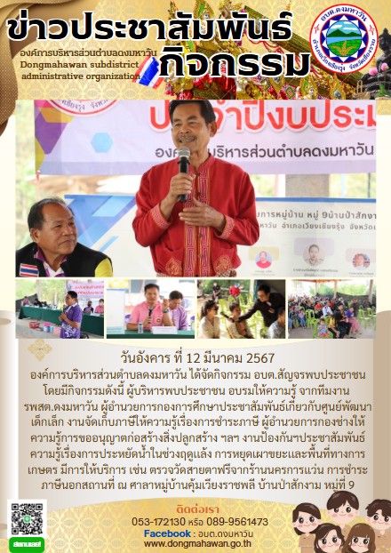 โครงการ อบต.ดงมหาวัน สัญจร พบประชาชน ประจำปีงบประมาณ พ.ศ.2567 หมู่ที่ 9 เวียงราชพลี