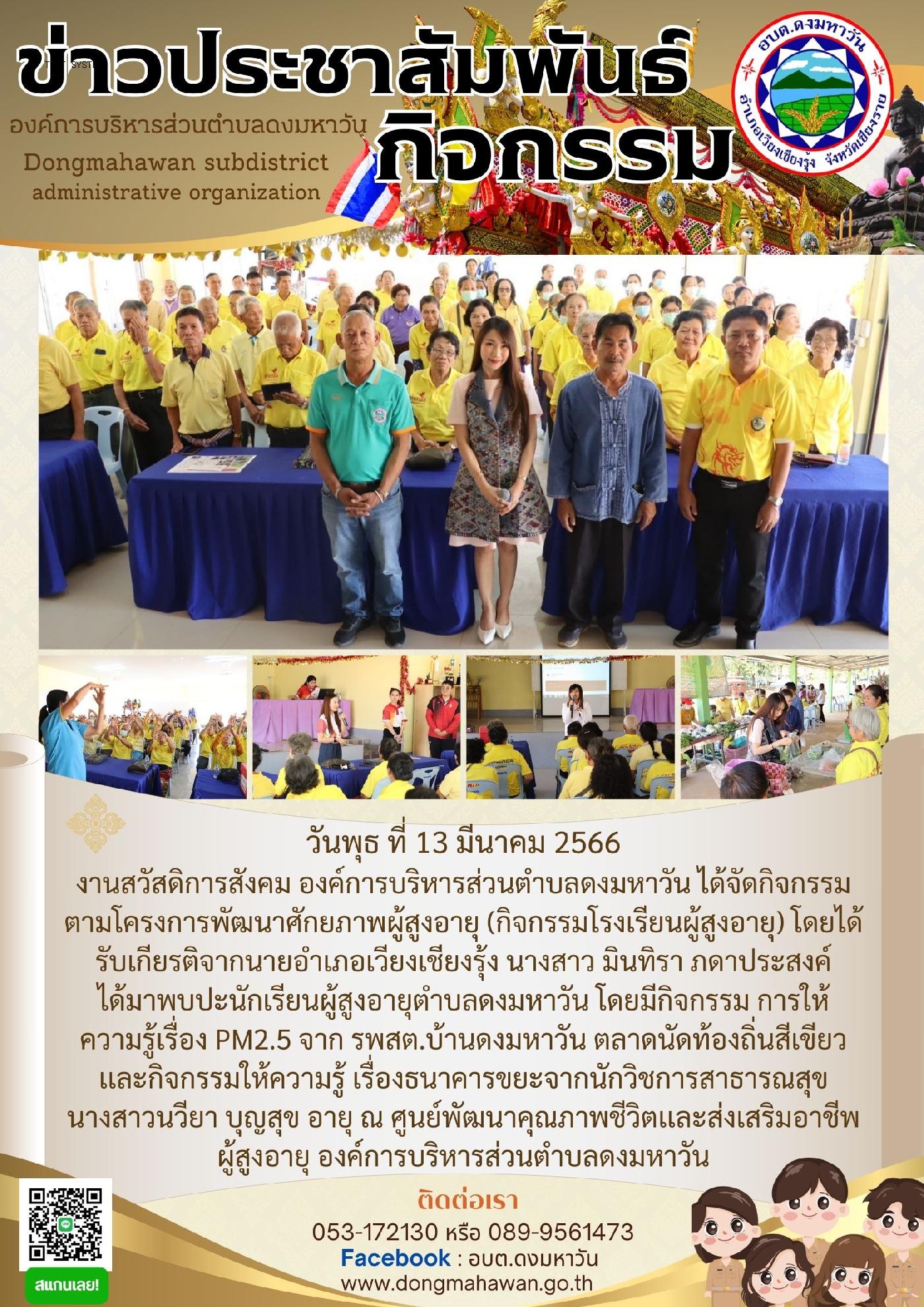 กิจกรรมโรงเรียนผู้สูงอายุ ได้รับเกียรติจากนายอำเภอเวียงเชียงรุ้ง ได้มาพบปะนักเรียนผู้สูงอายุตำบลดงมหาวัน