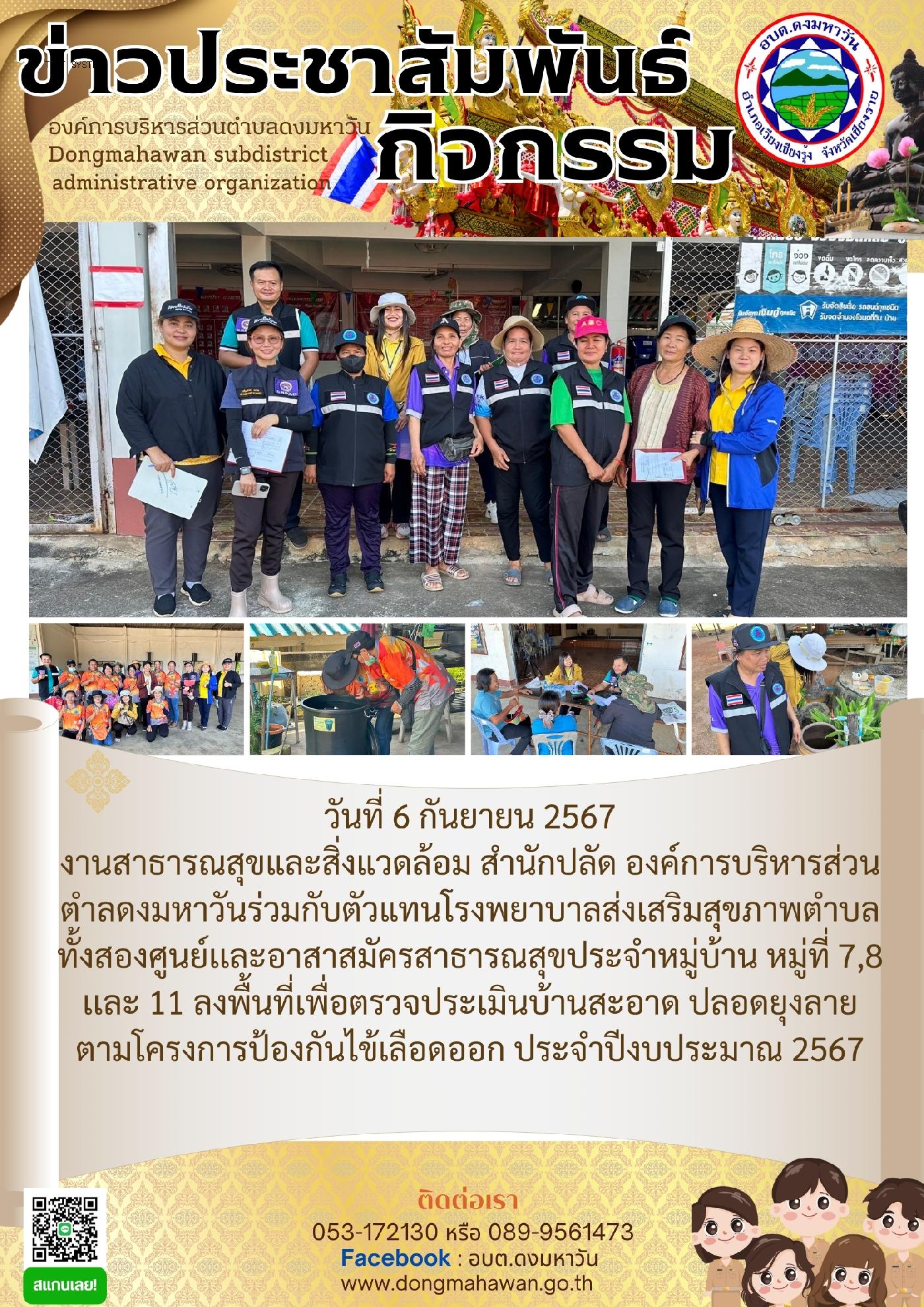 การลงพื้นที่เพื่อตรวจประเมินบ้านสะอาด ปลอดยุงลาย ตามโครงการป้องกันไข้เลือดออก ประจำปีงบประมาณ 2567