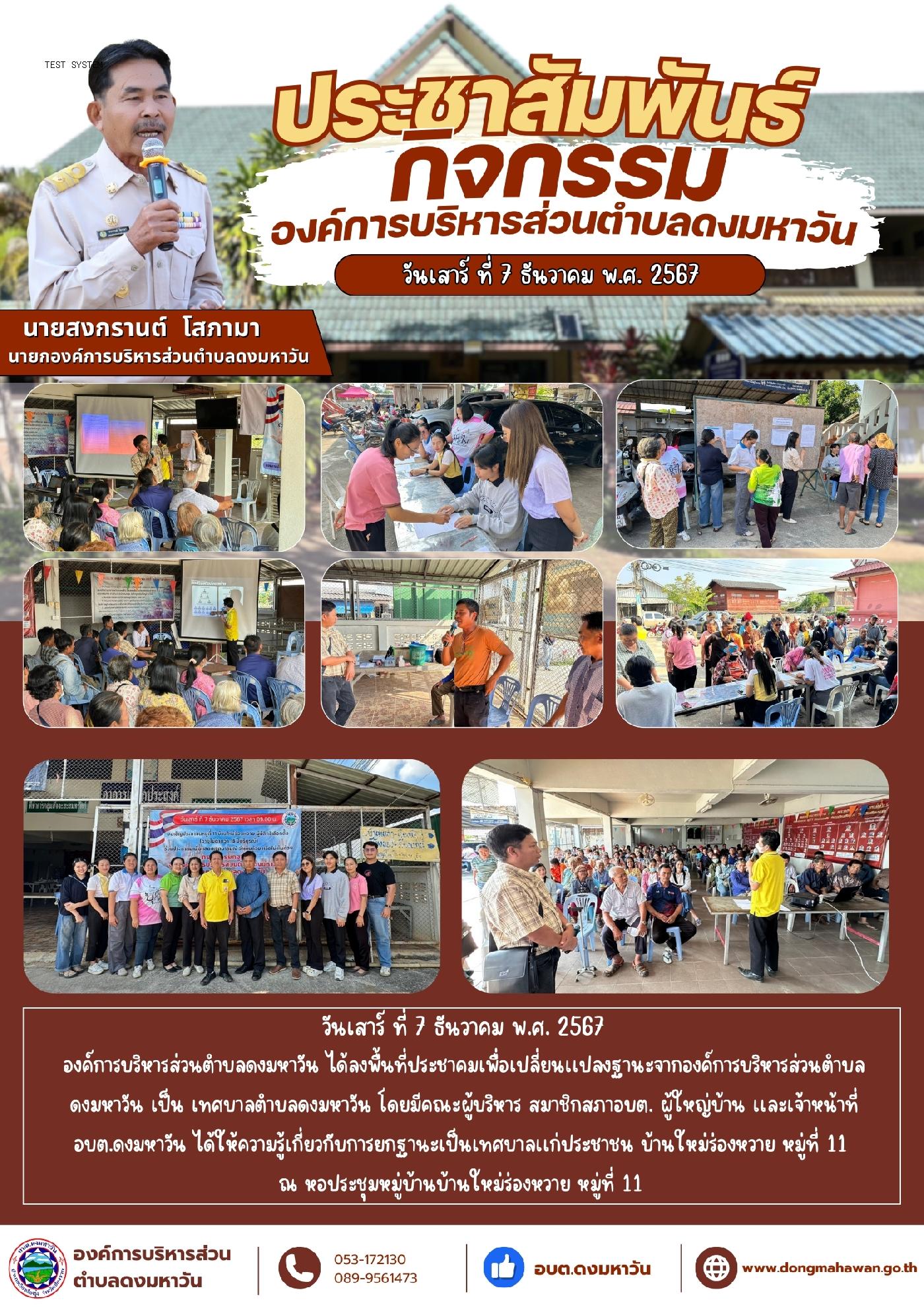 ประชาคมยกฐานะ องค์การบริหารส่วนตำบลดงมหาวัน เป็น เทศบาลตำบลดงมหาวัน หมู่ที่ 11