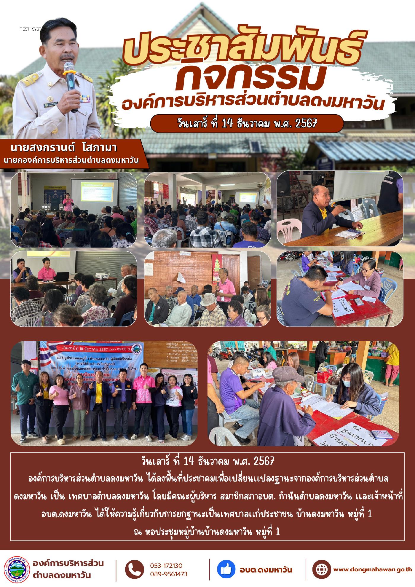 ประชาคมยกฐานะ องค์การบริหารส่วนตำบลดงมหาวัน เป็น เทศบาลตำบลดงมหาวัน หมู่ที่ 1
