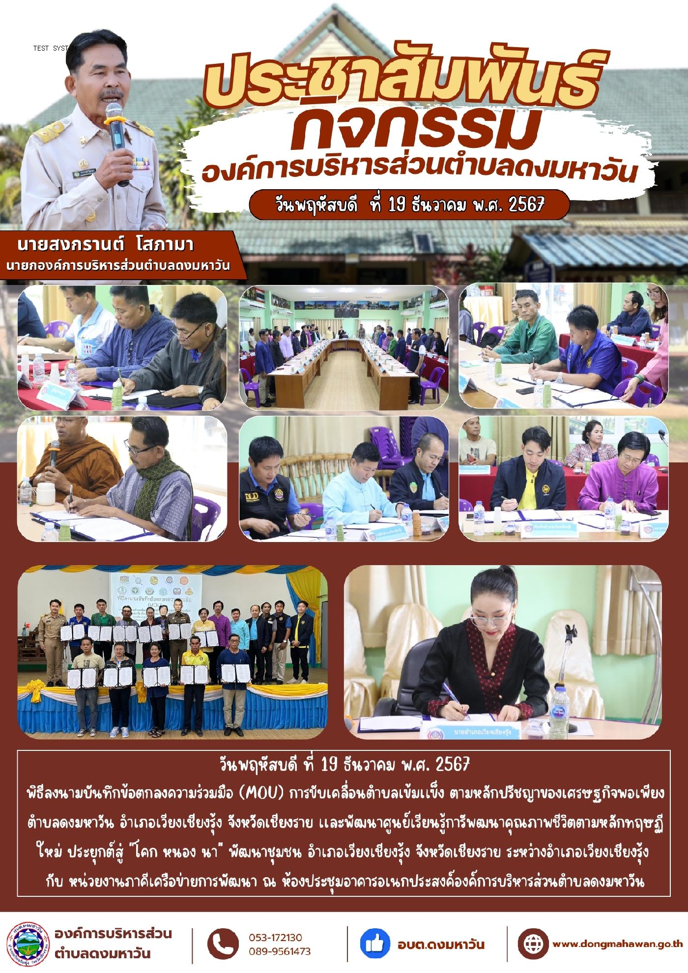 พิธีลงนามบันทึกข้อตกลงความร่วมมือ (MOU) การขับเคลื่อนตำบลเข้มเเข็ง ตามหลักปรัชญาของเศรษฐกิจพอเพียง ตำบลดงมหาวัน