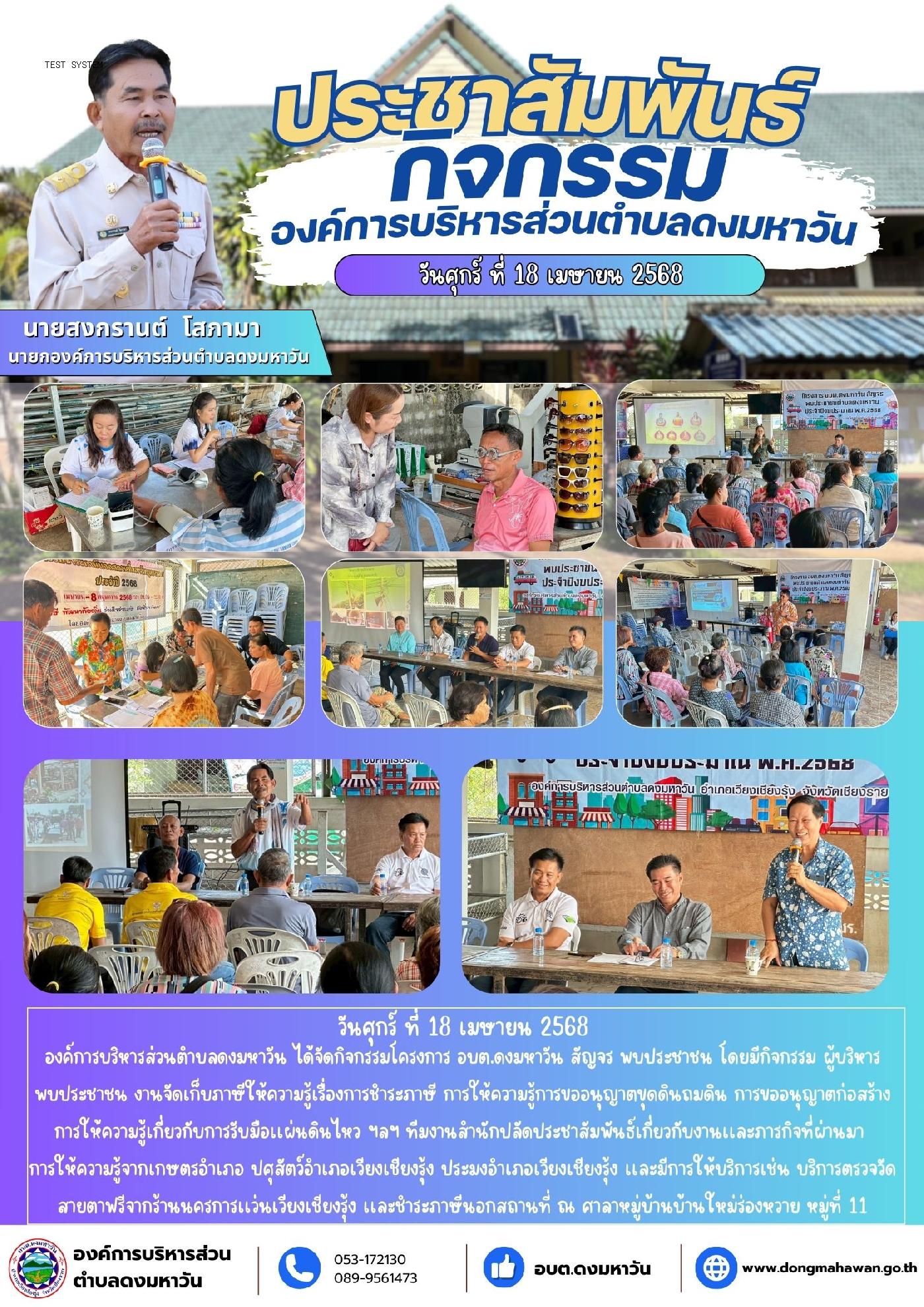 กิจกรรม อบต.ดงมหาวัน สัญจรพบประชาชน ประจำปีงบประมาณ พ.ศ.2568 บ้านใหม่ร่องหวาย หมู่ที่ 11
