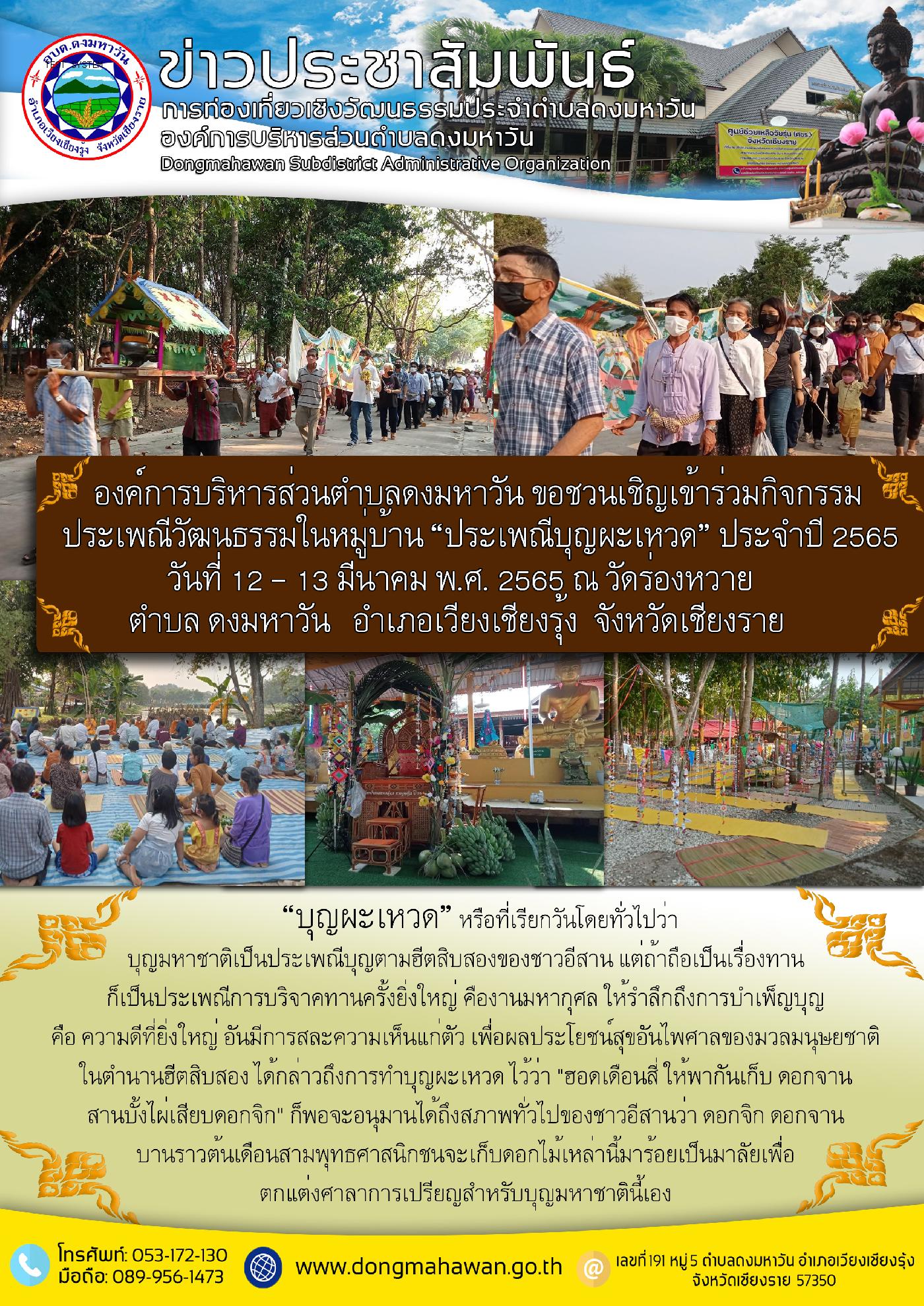 ประชาสัมพันธ์การท่องเที่ยวเชิงวัฒนธรรมประจำตำบลดงมหาวัน ประเพณีบุญผะเหวด