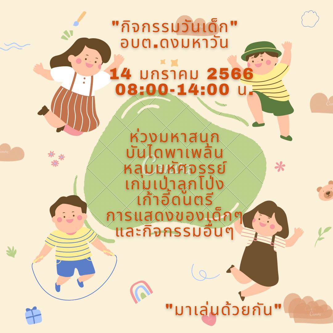 องค์การบริหารส่วนตำบลดงมหาวันขอเชิญร่วมกิจกกรรมวันเด็ก วันที่ 14 มกราคม 2566