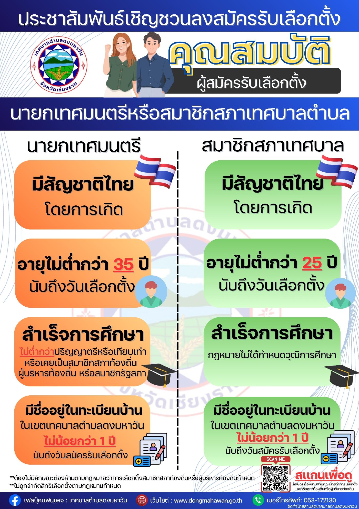 ประชาสัมพันธ์คุณสมบัติของผู้รับสมัครนายกเทศมนตรีเเละสมาชิกสภาเทศบาลตำบลดงมหาวัน
